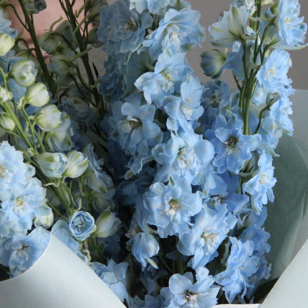 Дельфиниум – 9 шт.Упаковка – 1 шт.Лента атласная – 1 шт.