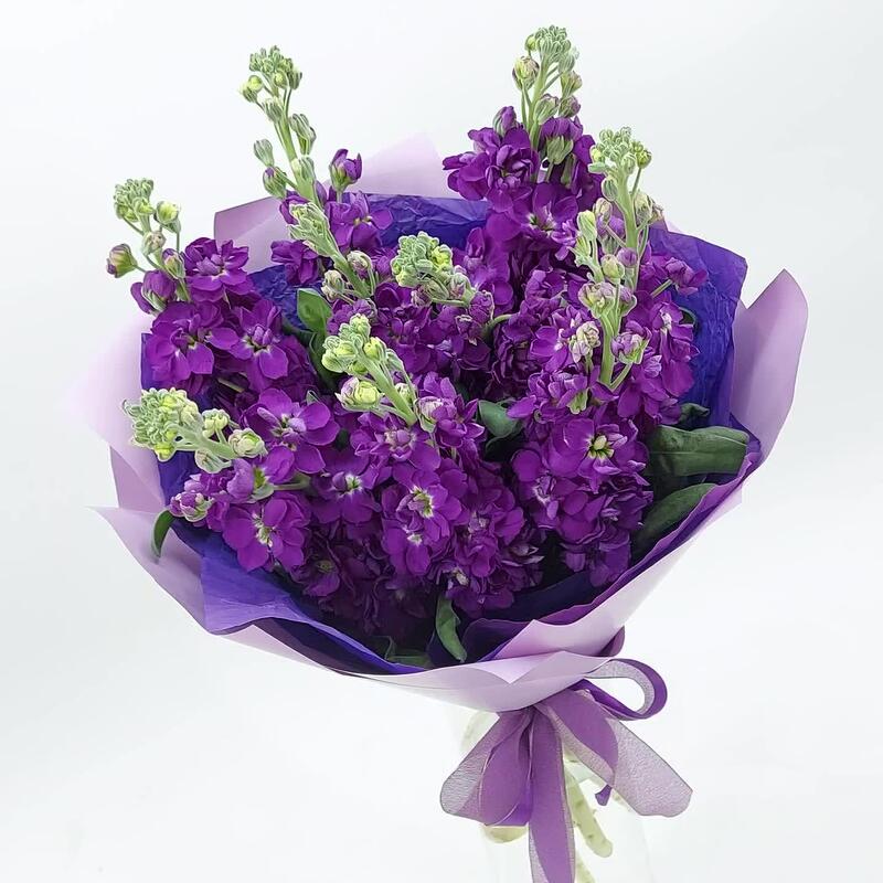 Яркая, ароматнейшая маттиола напомнит о тёплых летних деньках. Такой букет всегда уместен и подойдёт для любого повода: День Рождения, именины, годовщина свадьбы, рождение ребенка, 8 марта, День Святого Валентина, выпускной и т.д. Можно вручить маме, сестре, подруге, коллеге, учителю, любимой.