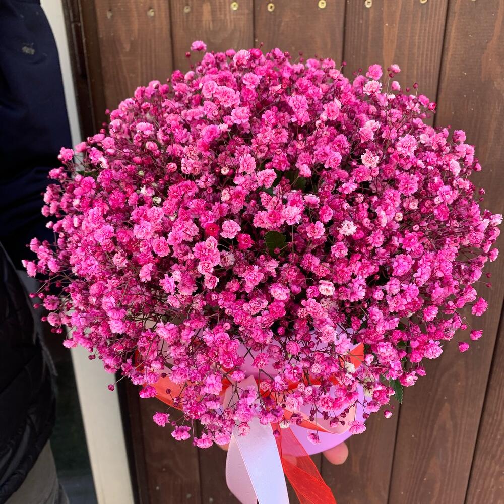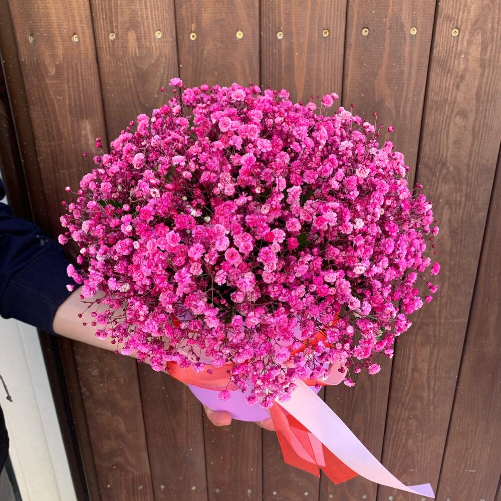 Букет из розовой гипсофилы в шляпной коробке «Ундина»