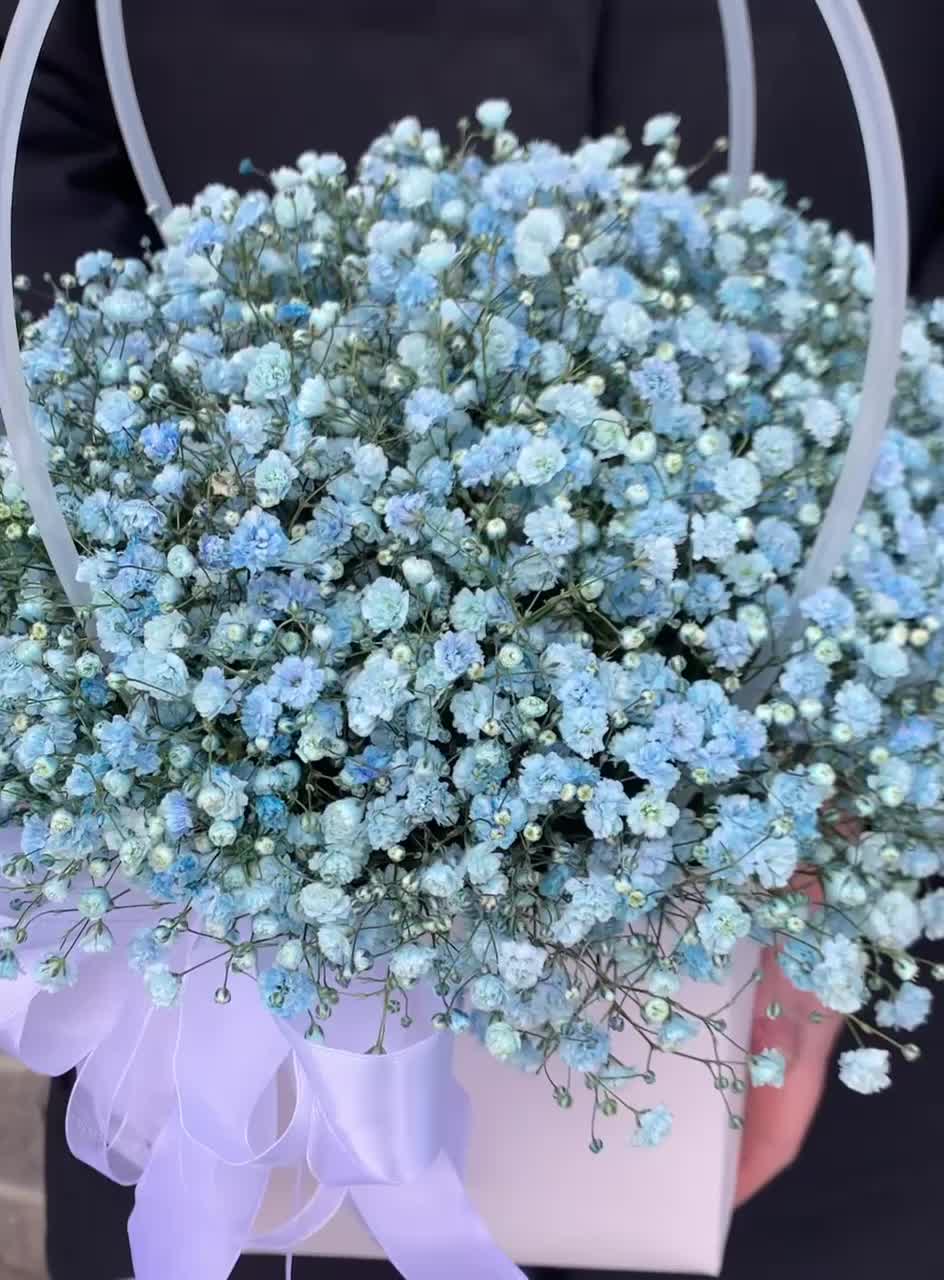 Стильная сумочка с воздушной гипсофилой станет идеальным подарком для самых любимых и близких! Памятка для букета:1. Чистая вода раз в сутки.2. Стебли подрезаем на 0,5см при каждой смене воды.3. Ставим в прохладное место, но не у окна.4. Чтобы вода оставалась свежей, не допускайте попадания листьев и лепестков в воду.5. Если это композиция в оазисе, то так же необходим ежедневный полив.