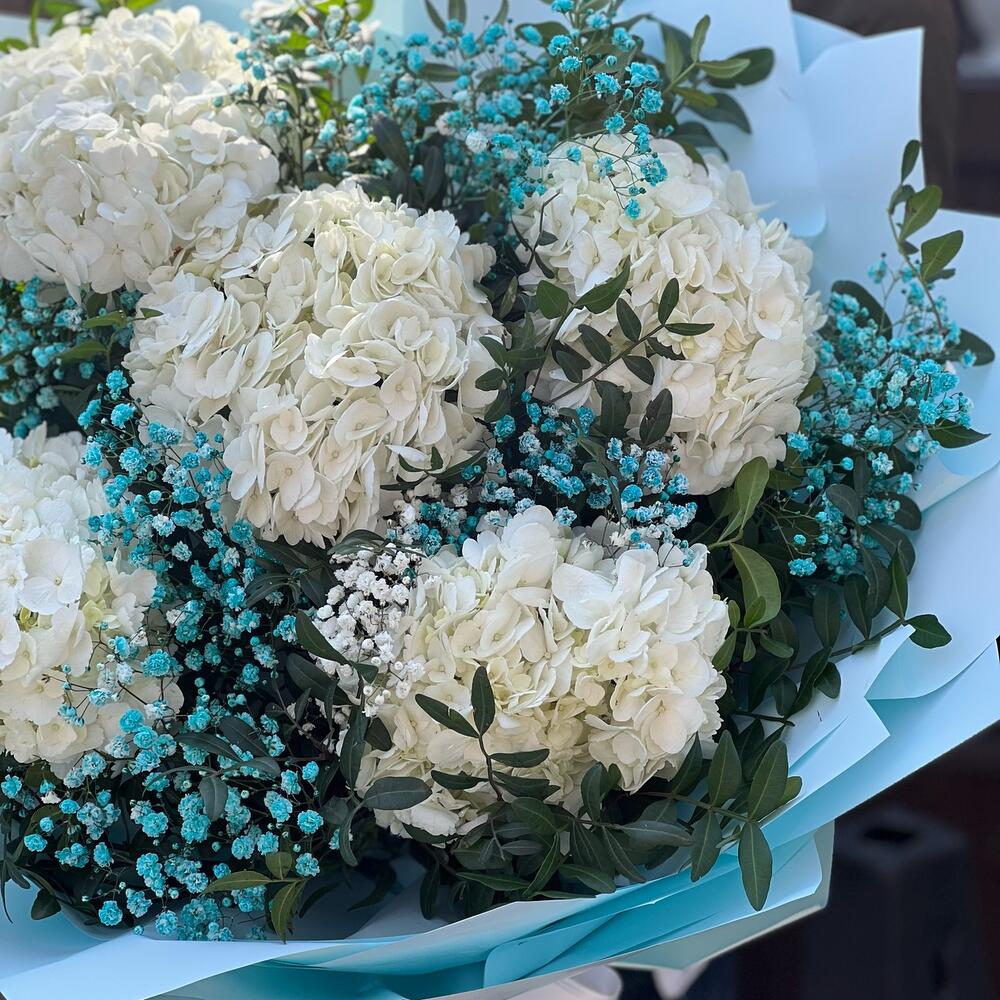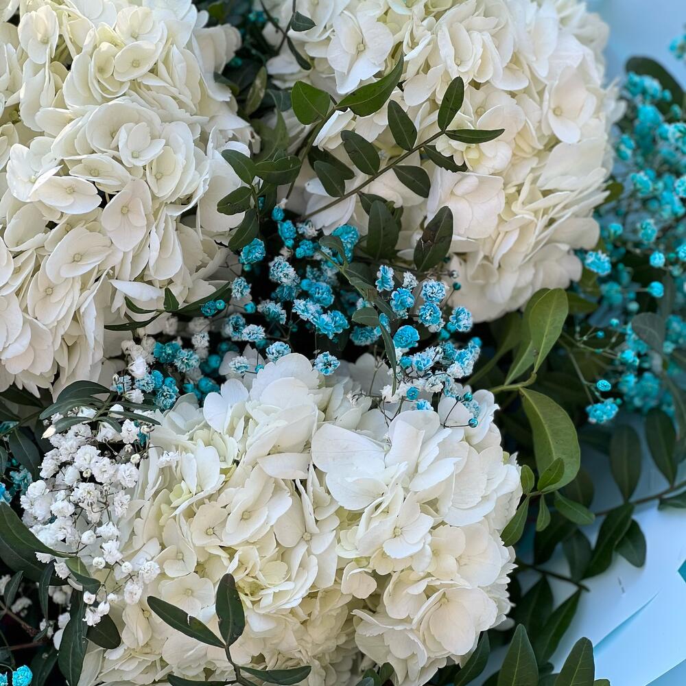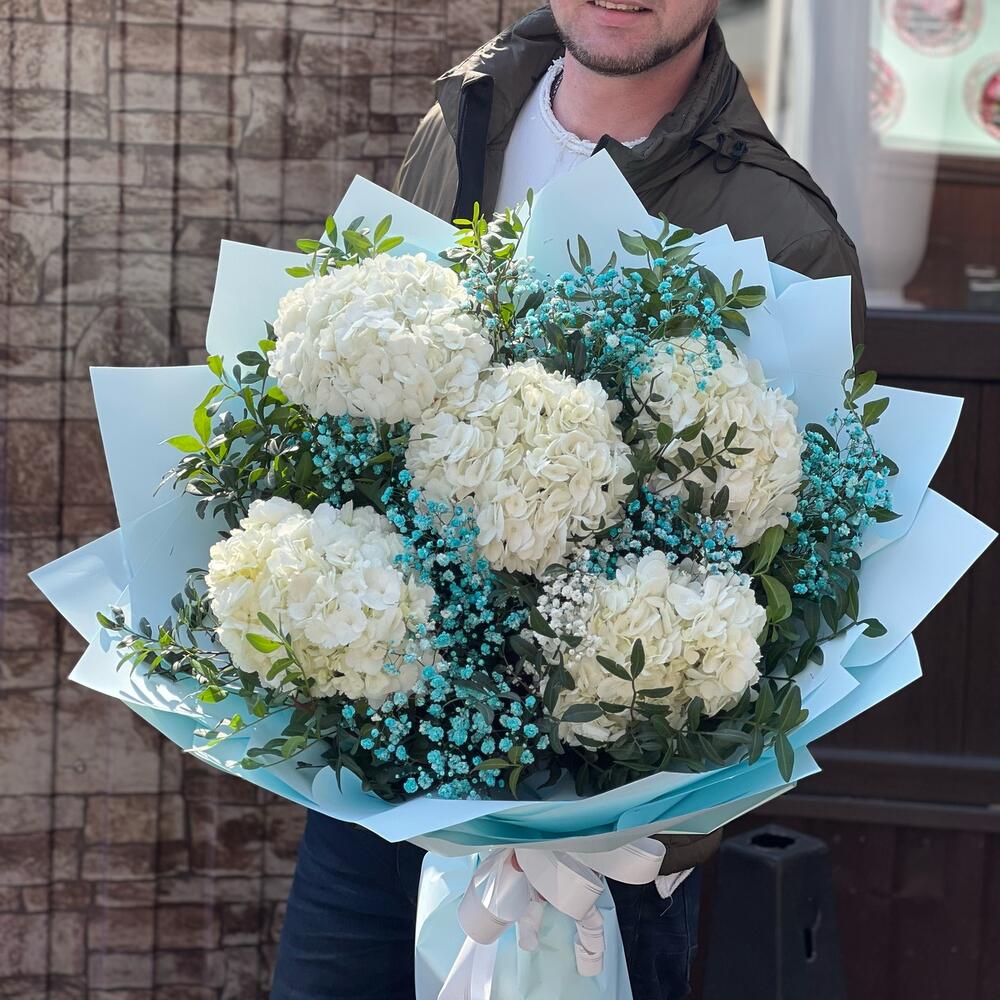Роскошный объемный букет из Гортензии с гипсофилой и зеленью в стильном оформлении порадует ваших близких ‼️