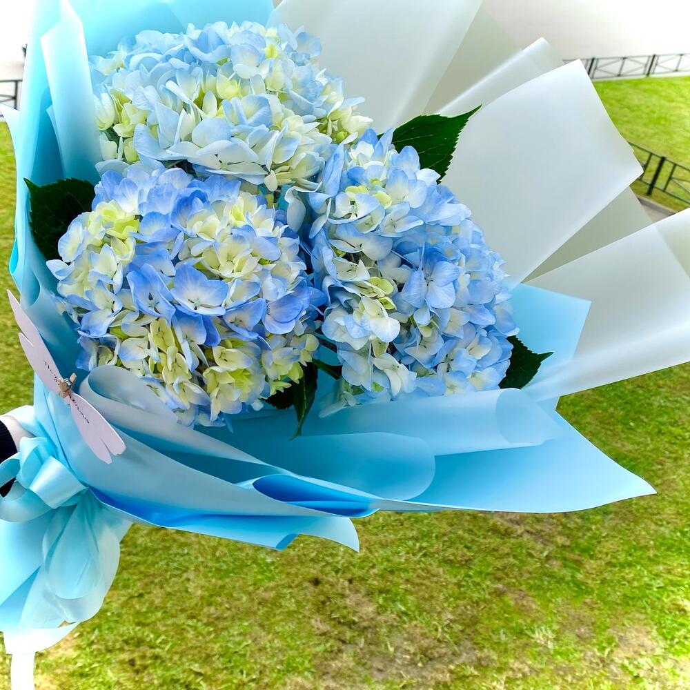 Гортензия – 3 шт.Лента атласная – 1 шт.Пленка матовая – 1 шт.Открыточка с вашими пожеланиями – 1 шт.