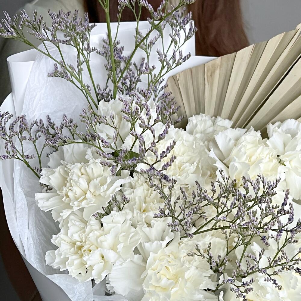 Гвоздика – 15 шт.Лимониум – 1 шт.пальма пика – 1 шт.