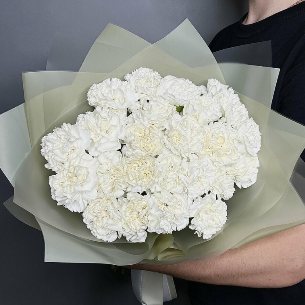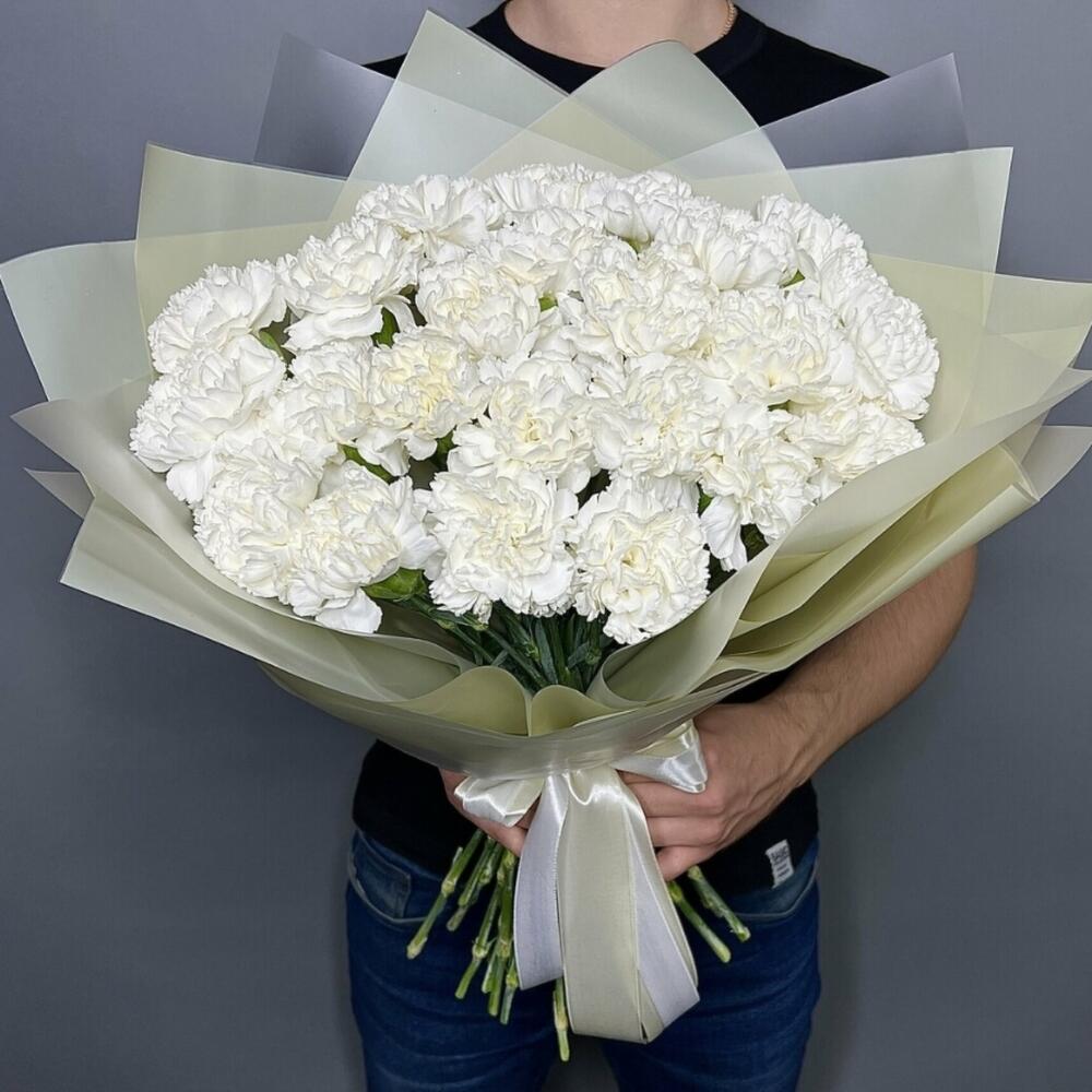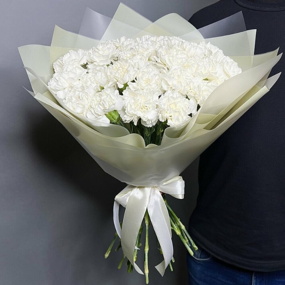 11 белых гвоздик в шляпной коробке