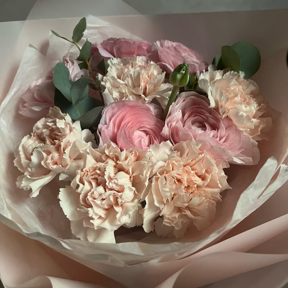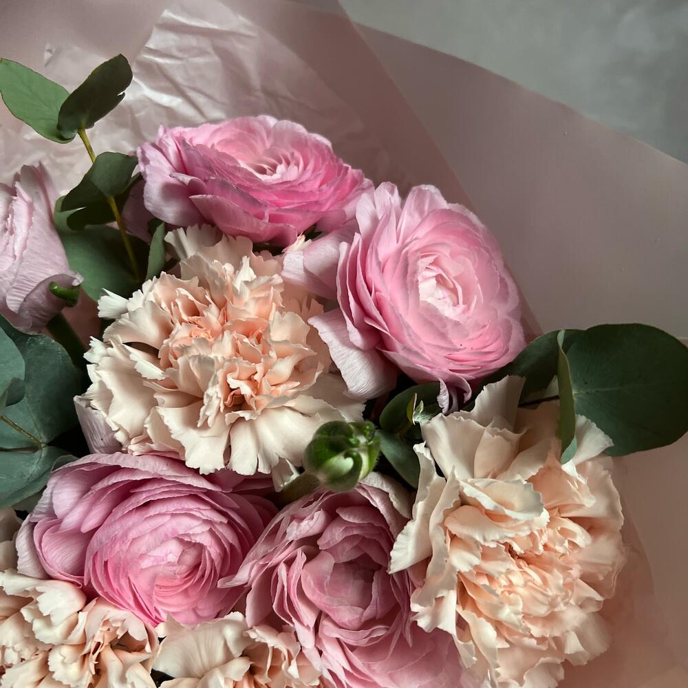 Букет из ранункулюсов и диантусов