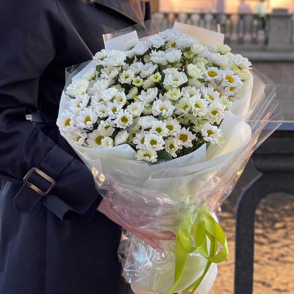 Букет из белой хризантемы “Раз-ромашка, даа- ромашка М»