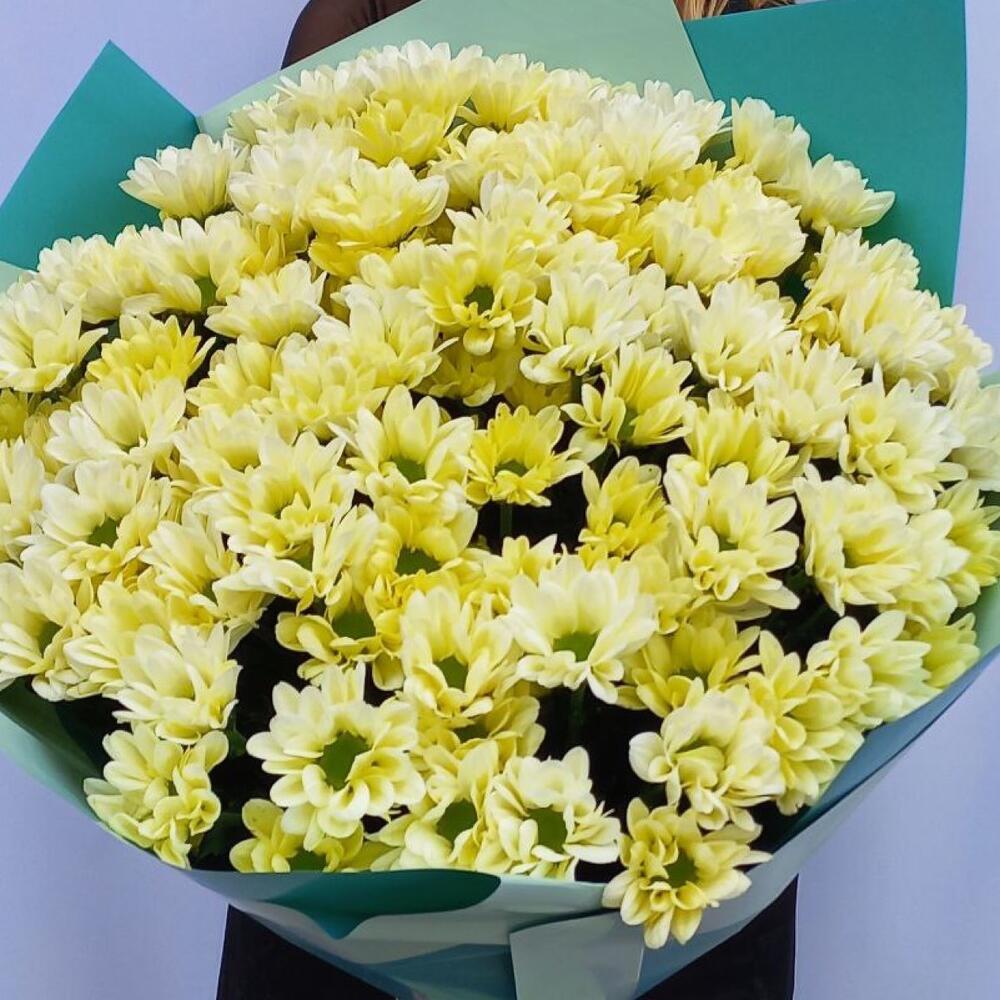 Кустовая хризантема – 15 шт.Упаковка дизайнерская – 1 шт.Лента атласная – 1 шт.