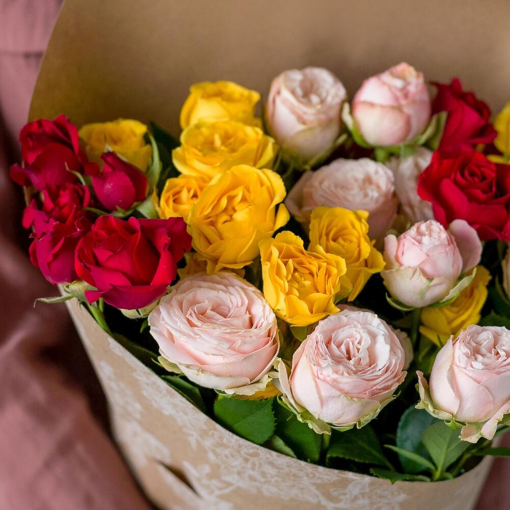 7 кустовых роз микс в крафте