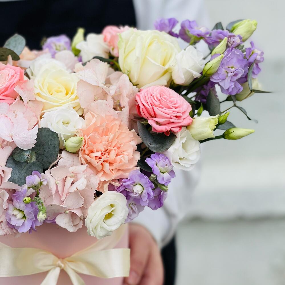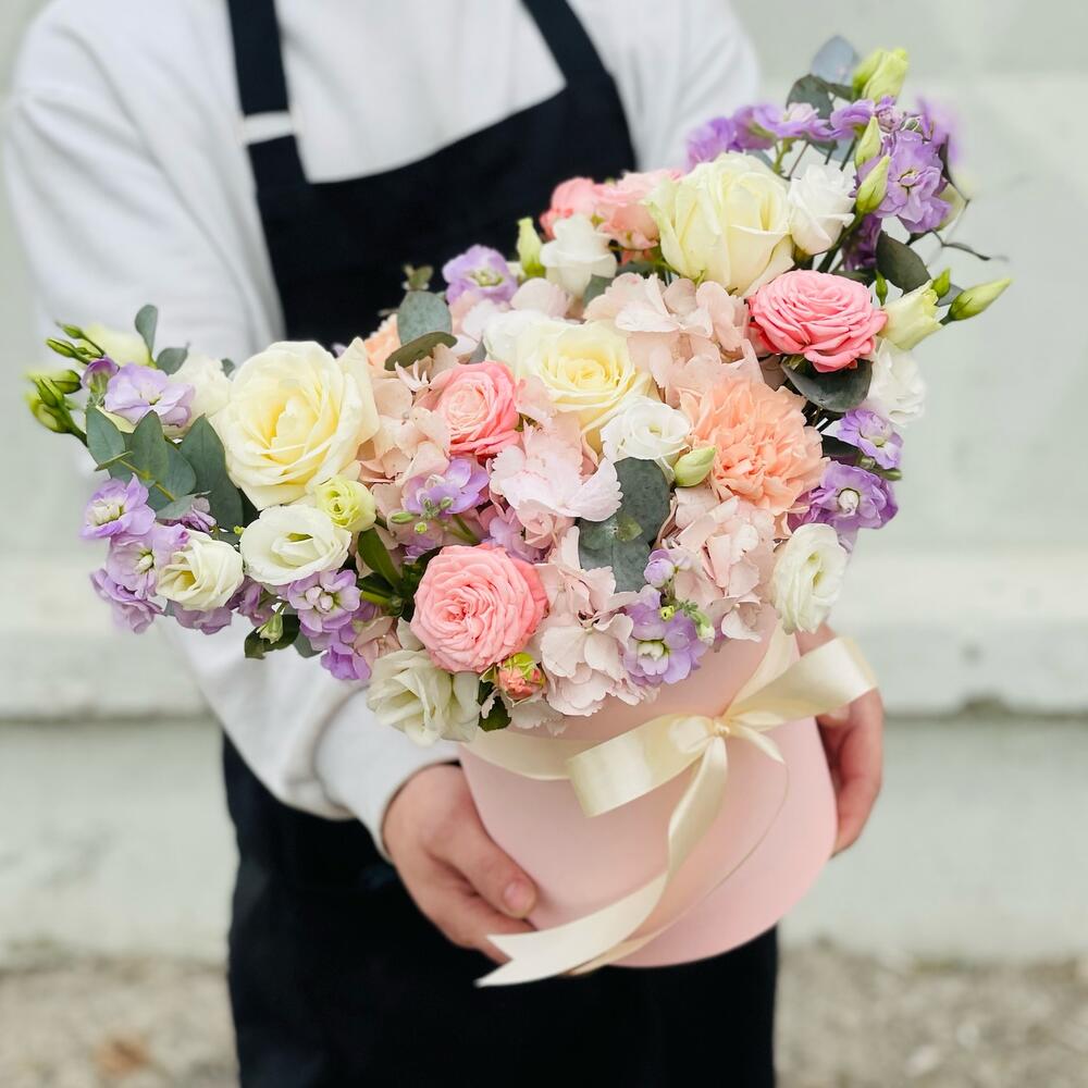 Авторский микс . Цветы в шляпной коробке
