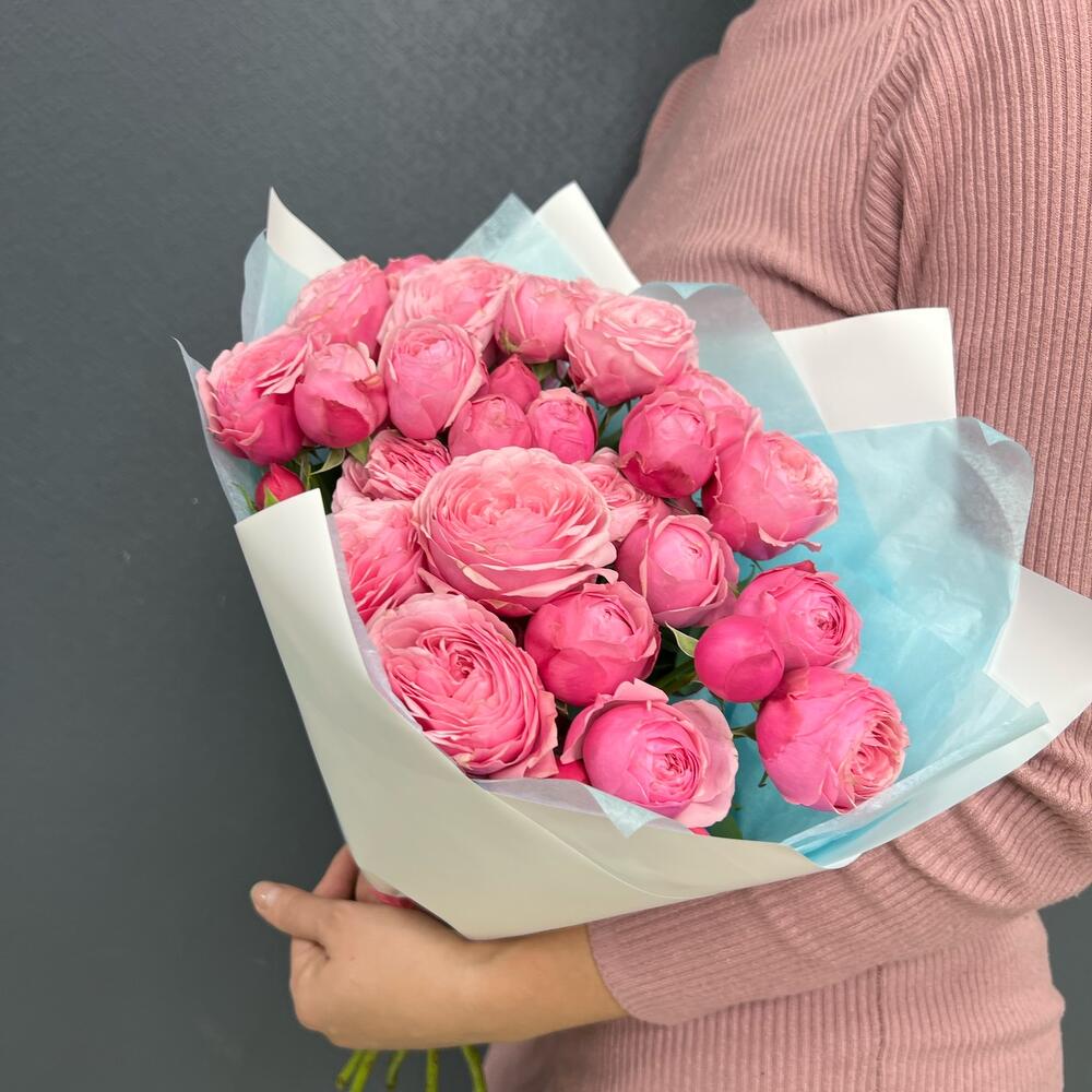 Тишью – 2 шт.Роза пионовидная кустовая – 7 шт.Пленка матовая – 2 шт.