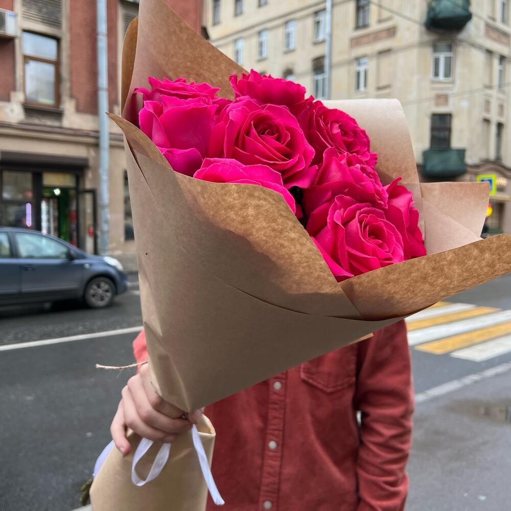 Букет из 9 розовых роз в крафтовой упаковке