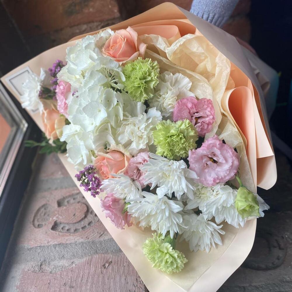 Категорий: Гвоздики, Гортензии, Кустовые розы, Лизиантусы, Розы, Хризантемы