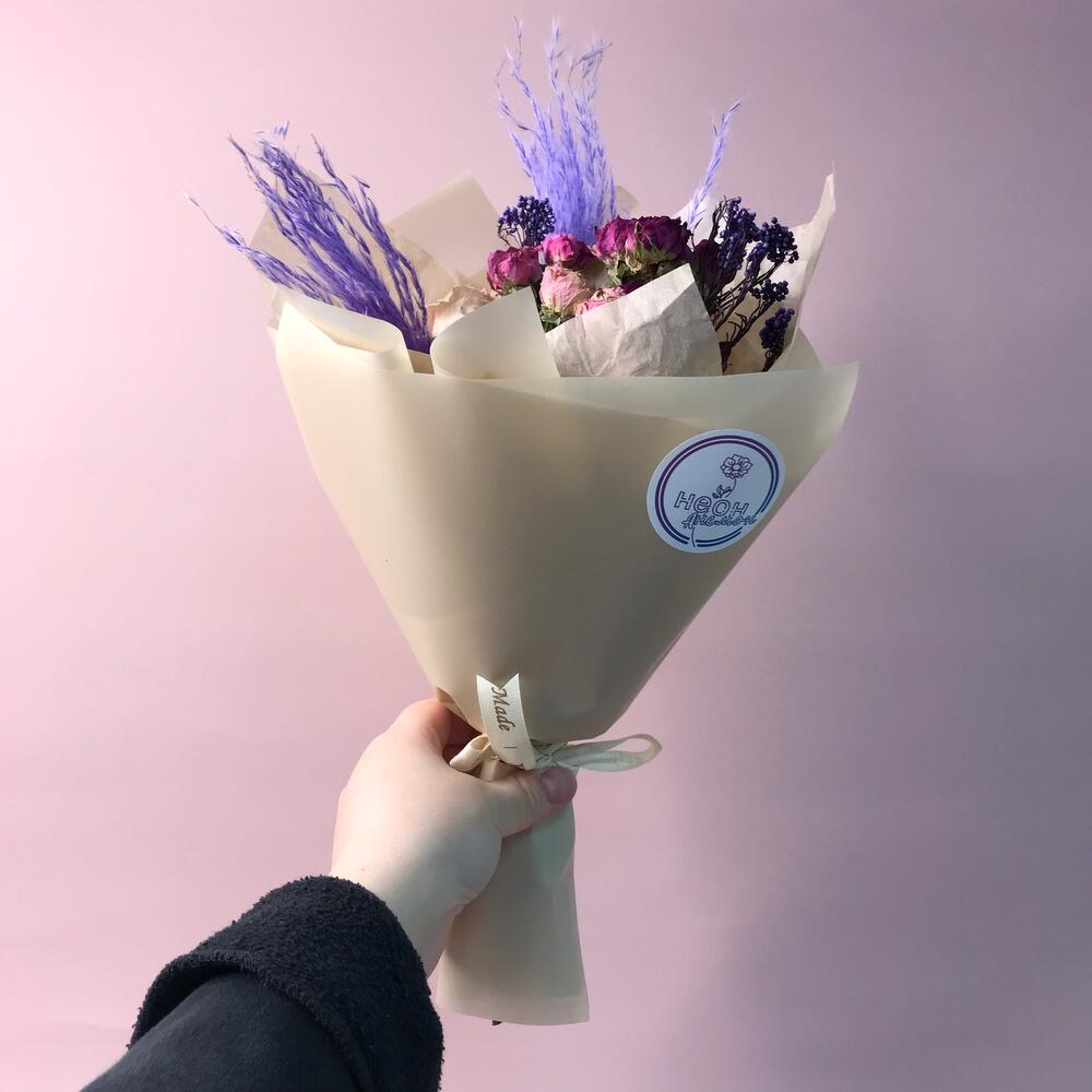 Букет-комплимент из засушенных цветов и сухоцветов
