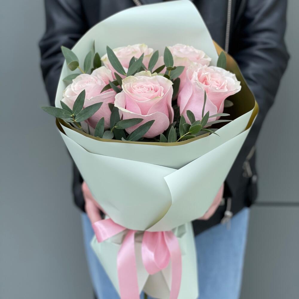 Букет Женственный из 5 роз и эвкалипта