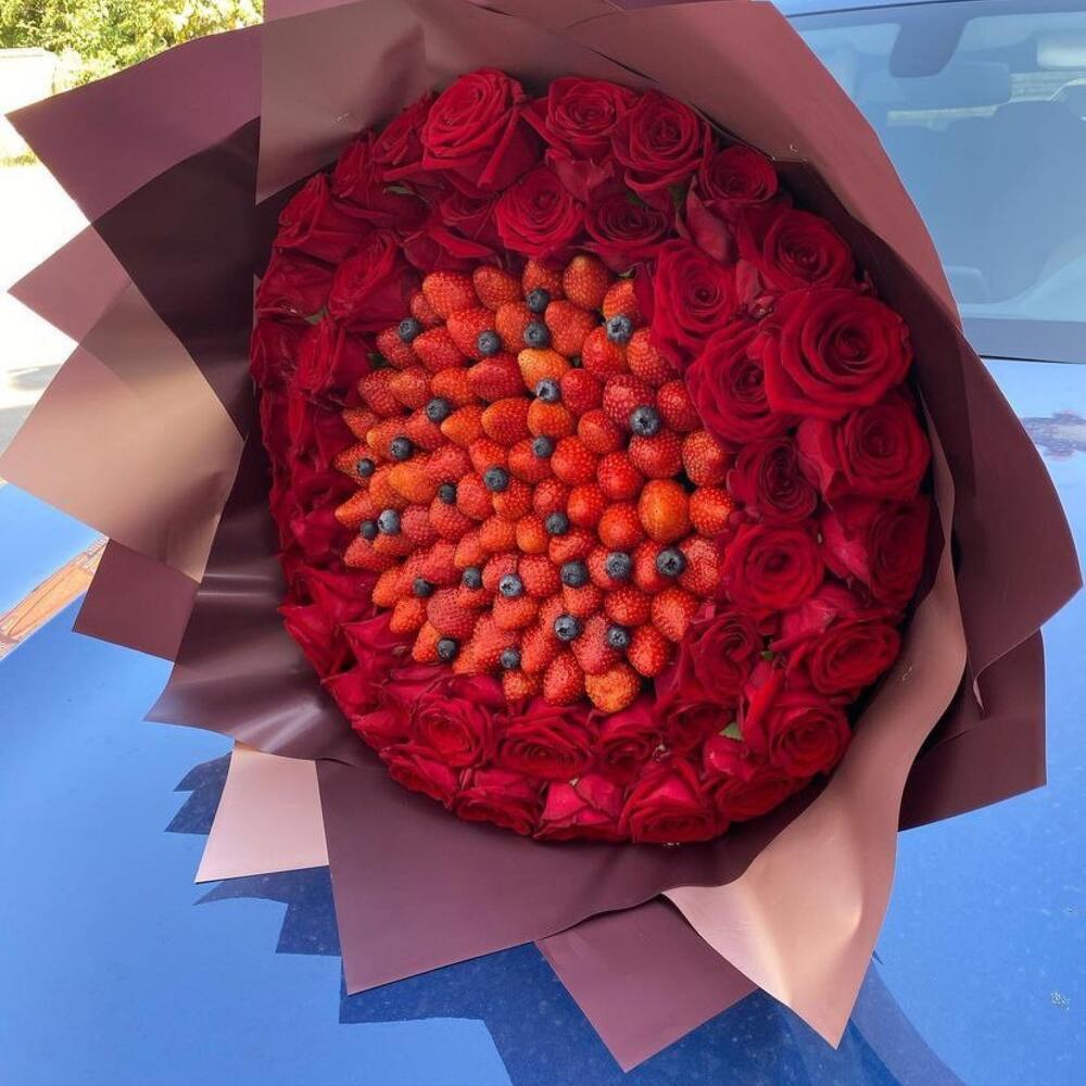 Роза – 45 шт.Голубика – 50 гр.клубника свежая – 1200 гр.