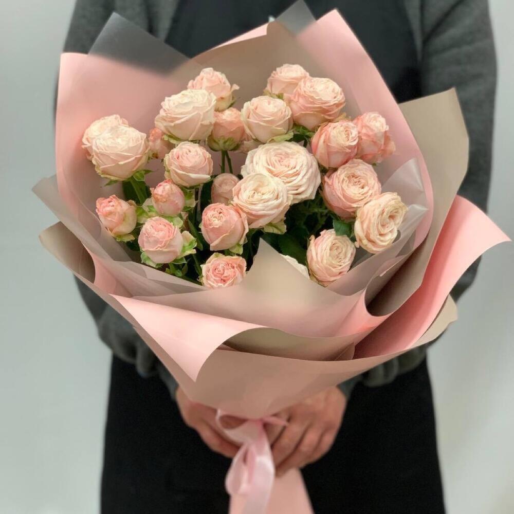 Альстромерии, Кустовые розы, Лизиантусы, Пионовидные розы, Розы, Ромашки