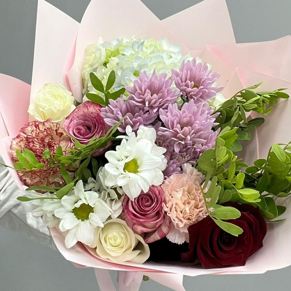 Гвоздики, Кустовые розы, Пионовидные розы, Розы